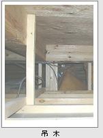 天井に使われる場合は「天井吊木」とも言い、天井の野縁受けを小屋梁などからつり支える。